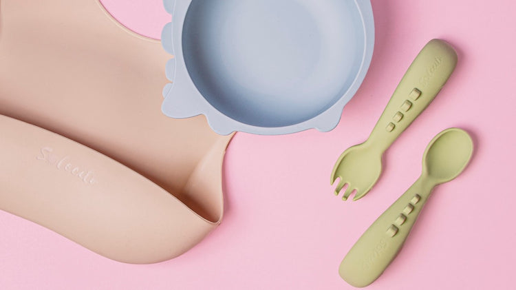 CUCHARA Y TENEDOR DINNO DE SILICON / BABY BLUE